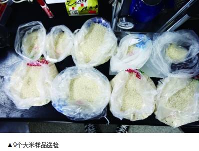 样品来源:共9份样品,7份是记者从4个小摊购买的样品,还是两份检测工作人员自家购买的正食用的“新米”